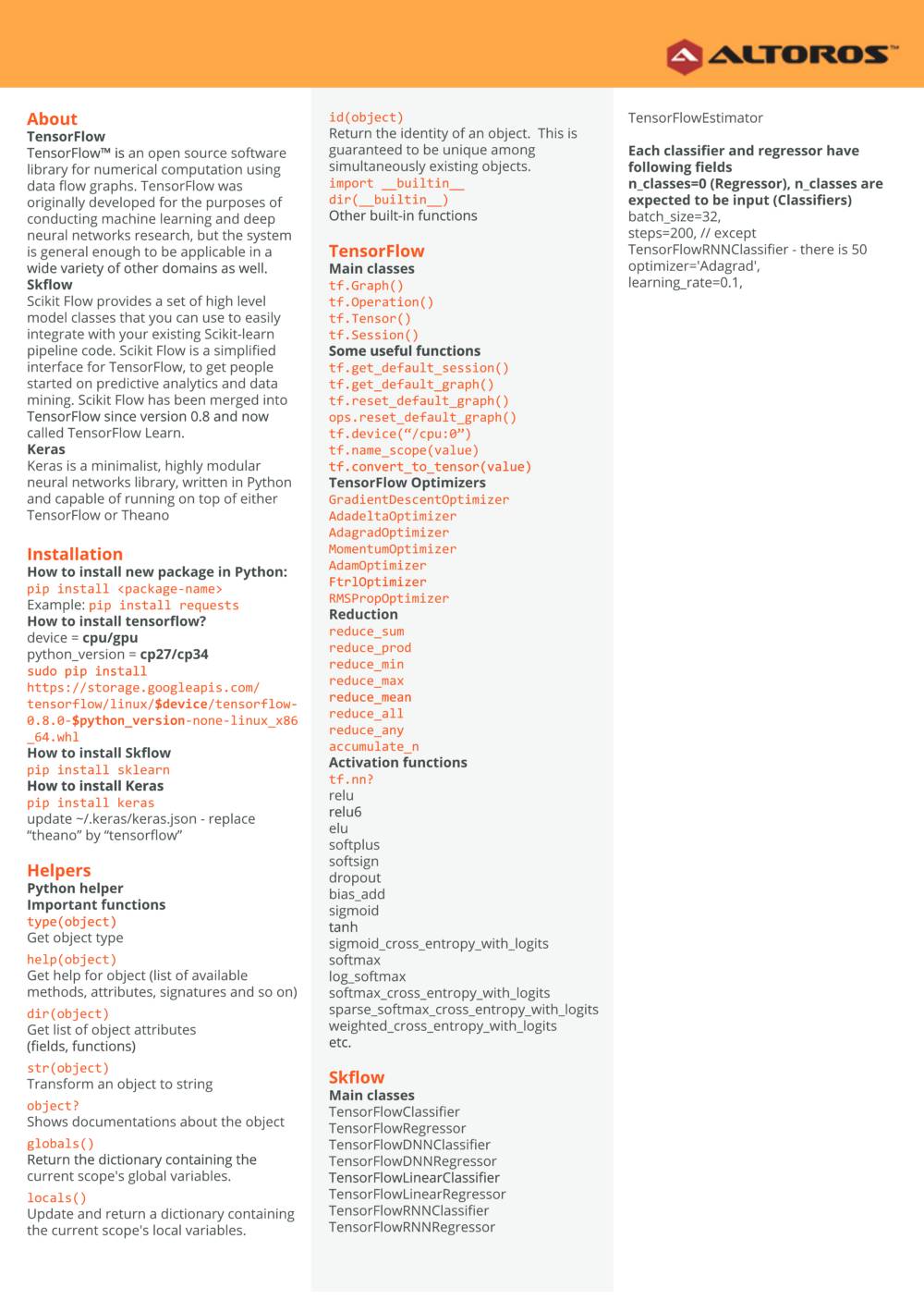 今年谷歌发布了第二代 TPU,同时它能在 Google Compute Engine 上进行使用。第二代 TPU 的性能达到每秒 180 万亿次浮点运算(180 teraflops),并且如果将 64 个 TPU 组织成一个计算集群,那么它的性能达到每秒 11.5 千万亿次浮点运算(11.5 petaflops)。如下图所示,该速查表不仅简要介绍了 TensorFlow、Skflow 和 Keras,同时还描述了如何安装和获得帮助的函数。该速查表还重点描述了 TensorFlow 的常用函数,如常见的梯度下降法、适应性梯度算法和 Adam 优化算法等优化器,常见的 ReLU、Sigmoid 和 tanh 等激活函数。