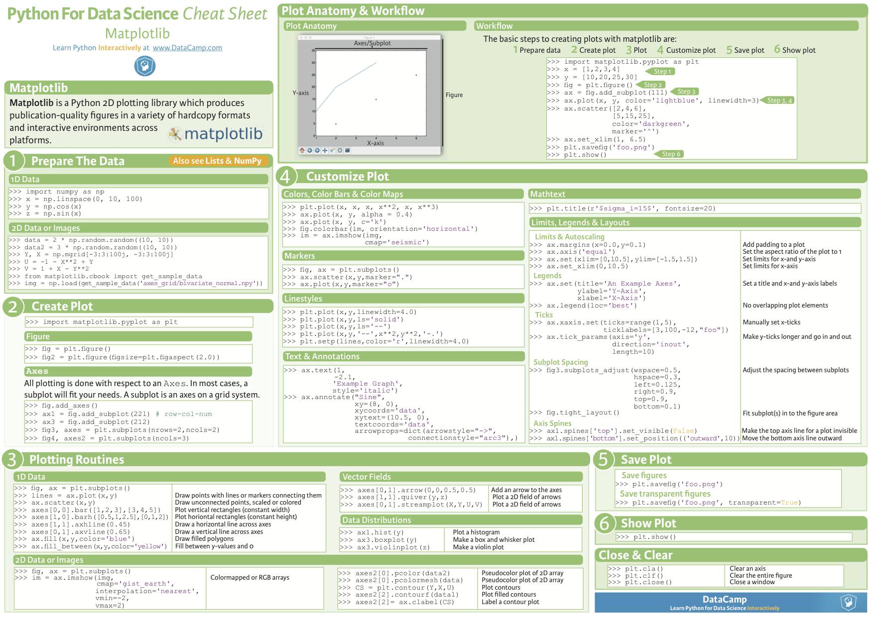 Matplotlib 是一个 Python 2D 绘图库,它在平台上以多种硬拷贝格式和交互环境生成发表品质的图。该速查表用于 Python 数据科学。
